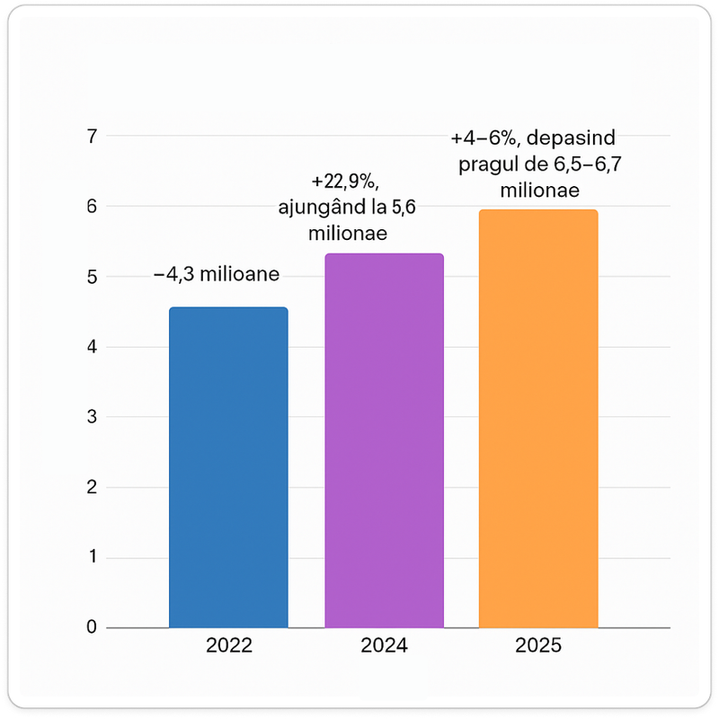 - 2024: +5,2%, totalizând 6,26 milioane